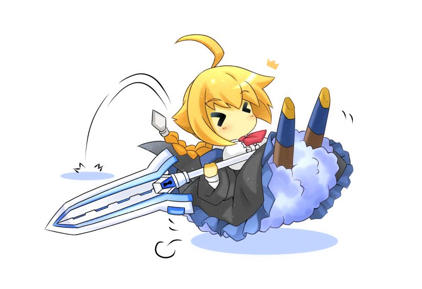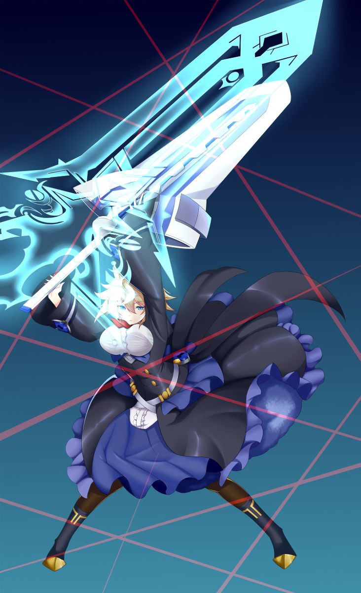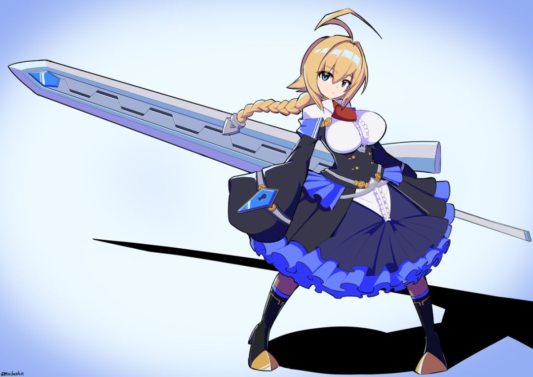 在BBCF游戏中使用AH技时,大剑变回了XBLAZE本篇中的细长的蓝色,使用巨大的纹章将敌人化为魔素结晶毁灭。 [1]