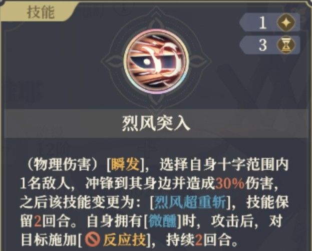 [反击]:状态,受到单体攻击且对方在攻击范围内时,用普攻或技能进行反击,造成一定的伤害。