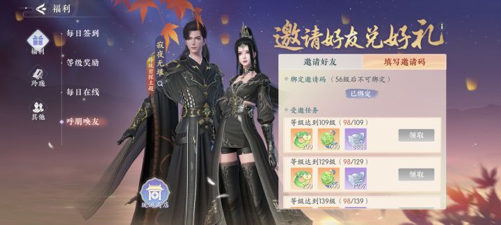 邀请码56级以后就没办法填了