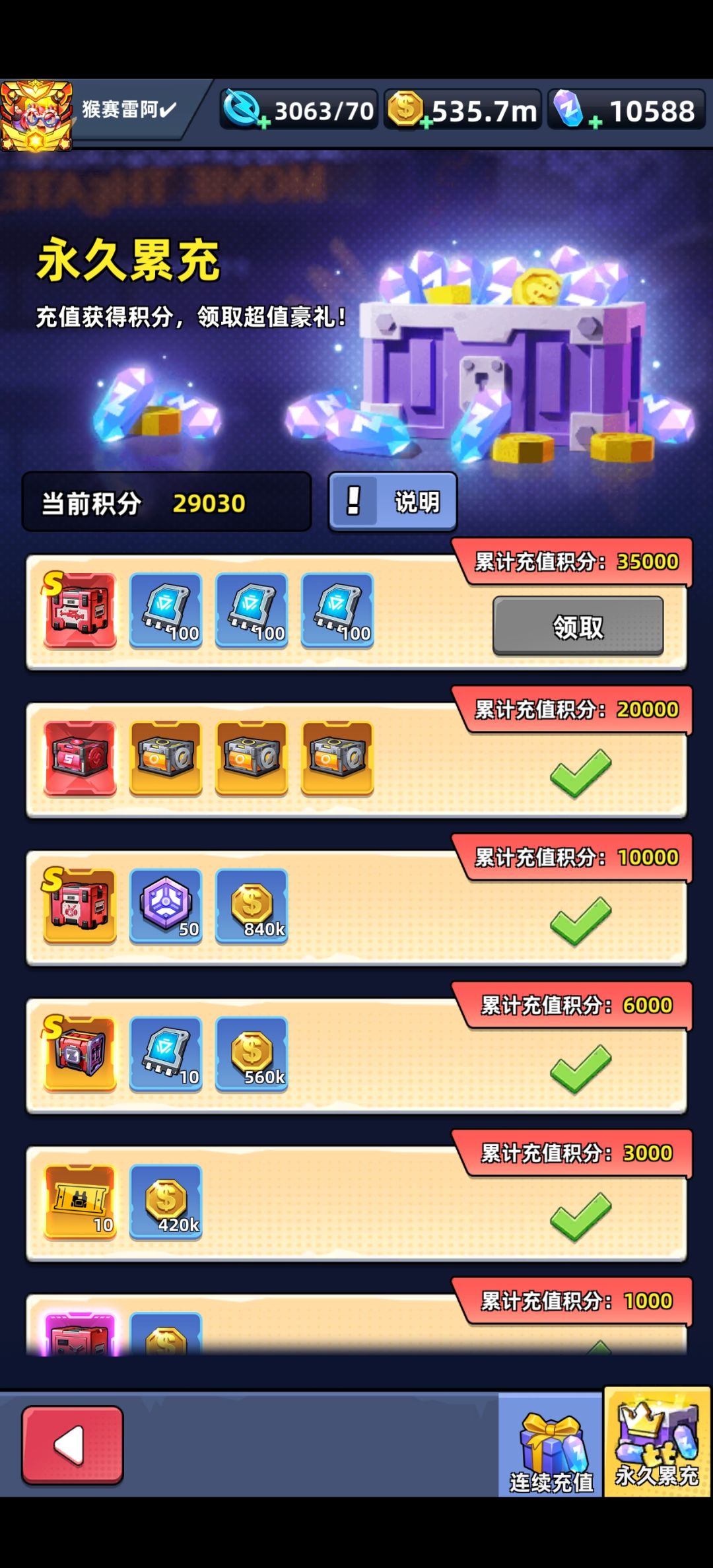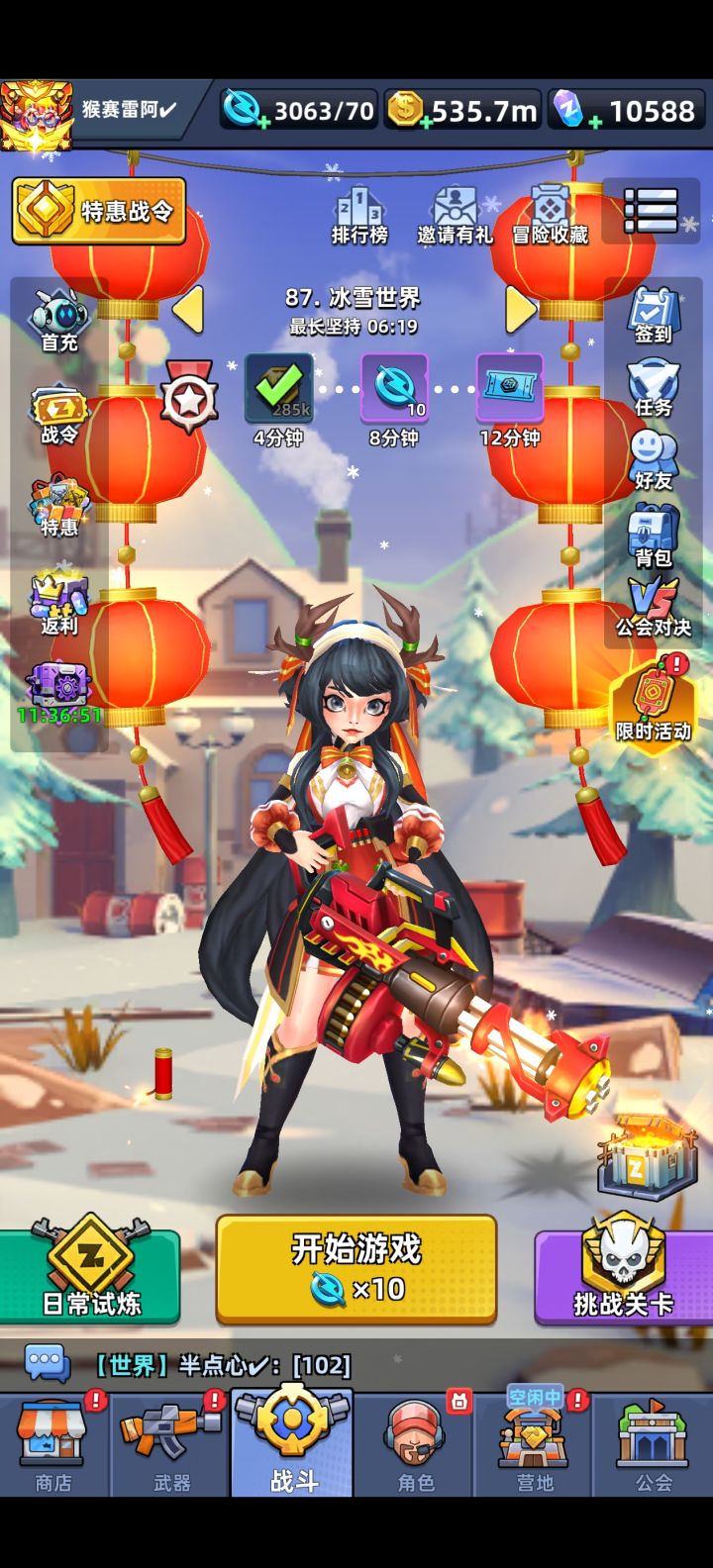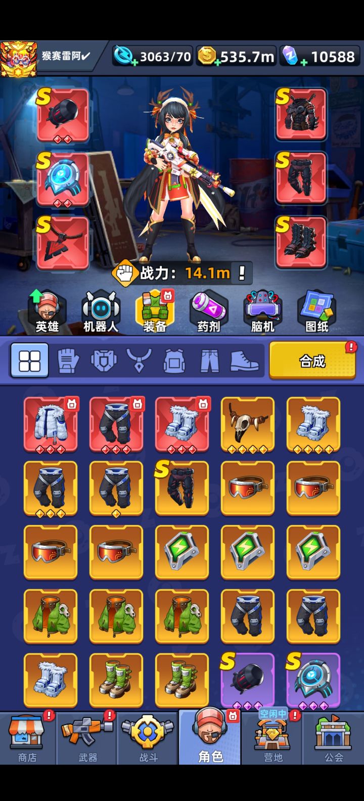 一个还不错的养成射击游戏,玩了小半年14m战力,买月卡,钻石战令,日常6元礼包。平民玩家推荐买月卡,可以免广告和拿钻石。新手35关之前建议买个加速月卡。前期资源用来抽装备,战力提升最快。小氪玩家不能急,慢慢攒票和钻石,有活动的时候用一波资源,32天才能出新手期,与服务器活动同步。氪佬就是各种活动礼包拉满,达成最高游戏体验。前期必拿的武器和英雄是圣诞步枪和改造战士。