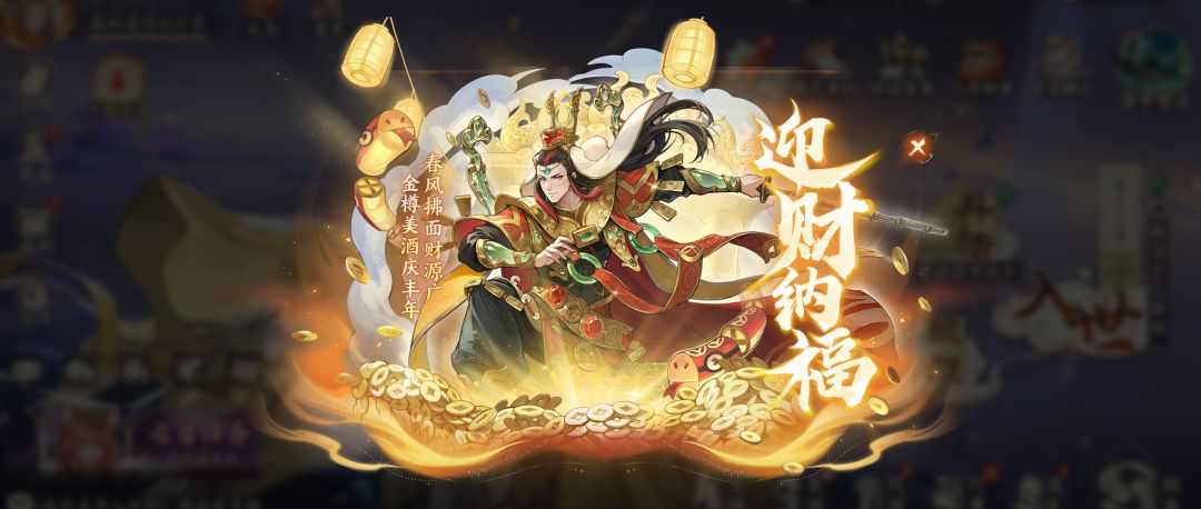 【活动说明】活动期间全新【绝】品御器角色「财神(仙)」的出现概率将大幅提升。活动卡池需消耗活动限时招募道具「财神帖」进行招募,活动结束后未消耗完的「财神帖」会按1:1的比例兑换成龙鲤帖。「财神」将于2月12日7:00加入「请神」、「心愿」常驻招募活动。