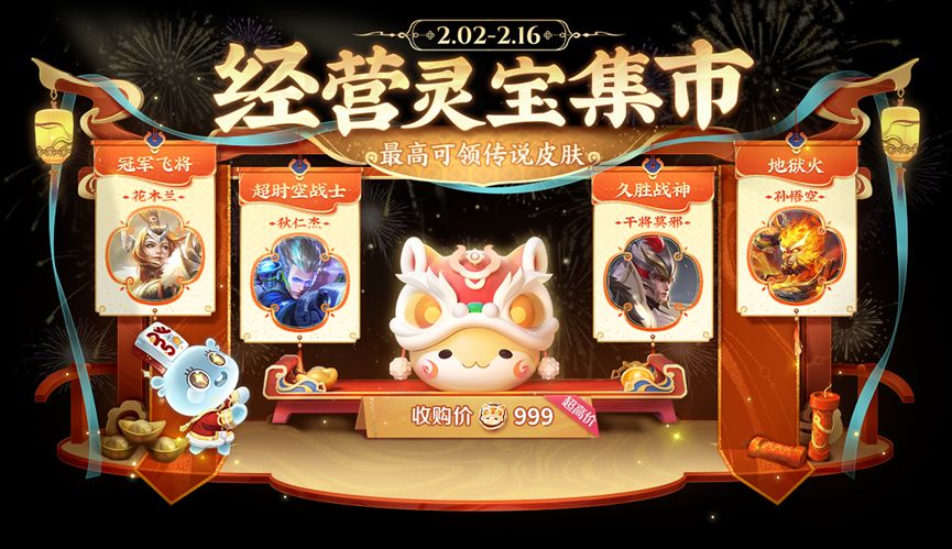 小王春节上新啦!快来经营你的灵宝市集赢最高传说皮肤吧!更有亚连-糖绘人间和诸葛亮全新星传说上线!