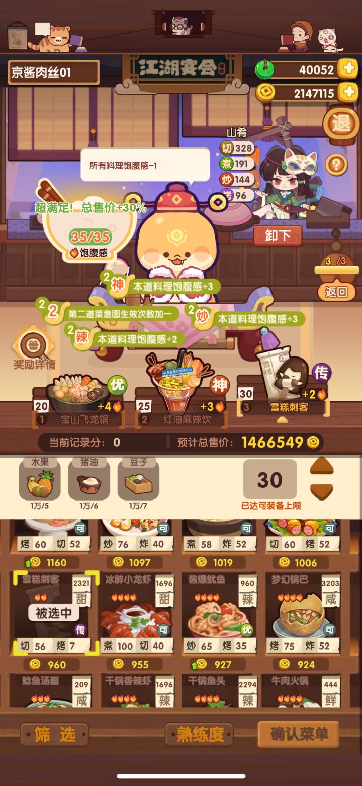 山肴带了金顶厨师帽(加切的厨具应该都可以,但我没试,不确定)