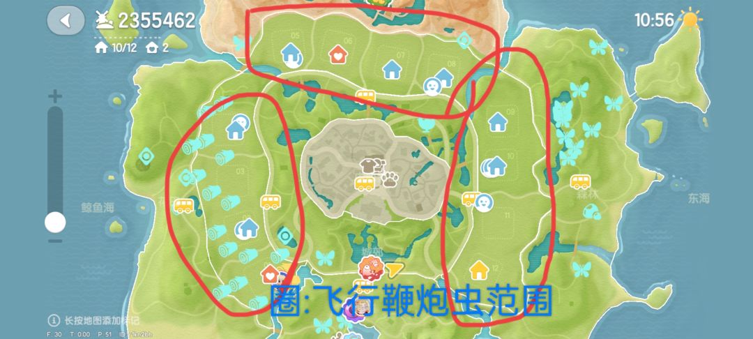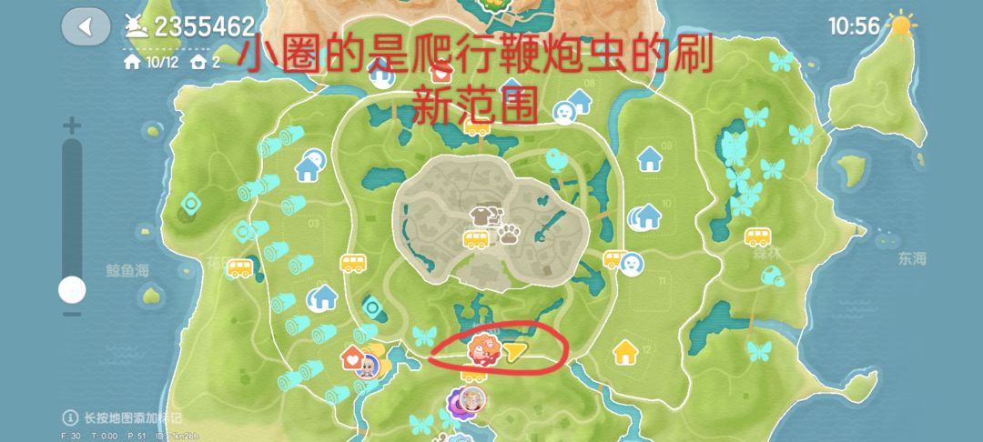 2.飞行鞭炮虫,位置是在家园,但我建议4个家园围绕着找,最好呢是按着温泉山,花田,渔村,森林连接线去找,这里会多点,还有4,8,12号房的大树那里也有,9号房家园左边也有可能刷到~缺点:刷新范围大,优点:颜色为紫色虫,容易辨认