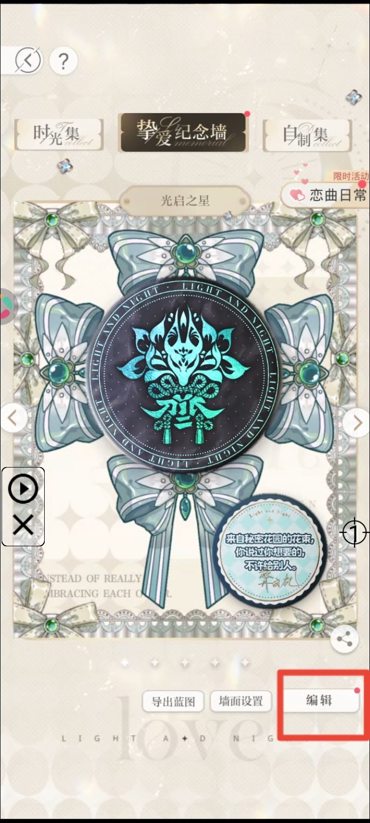 总算搞清楚特别任务怎么做了,点“纪念”,挚爱纪念墙点编辑,选择对应颜色模板,点保存再分享就可以了