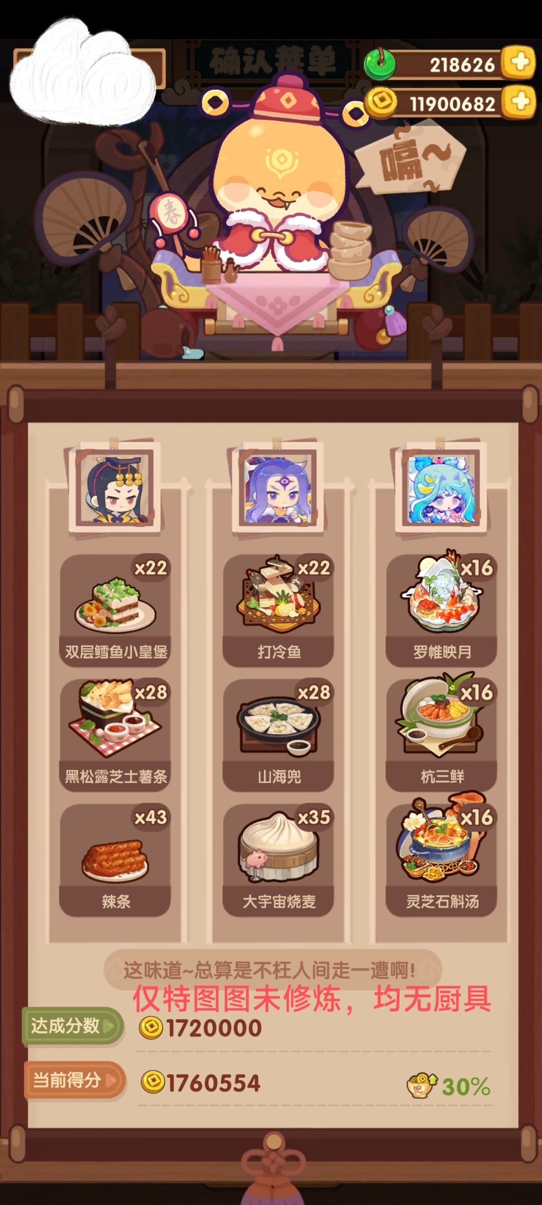 特图图、悲歌、藻白以外均修炼,厨具是之前装的但应该非必要