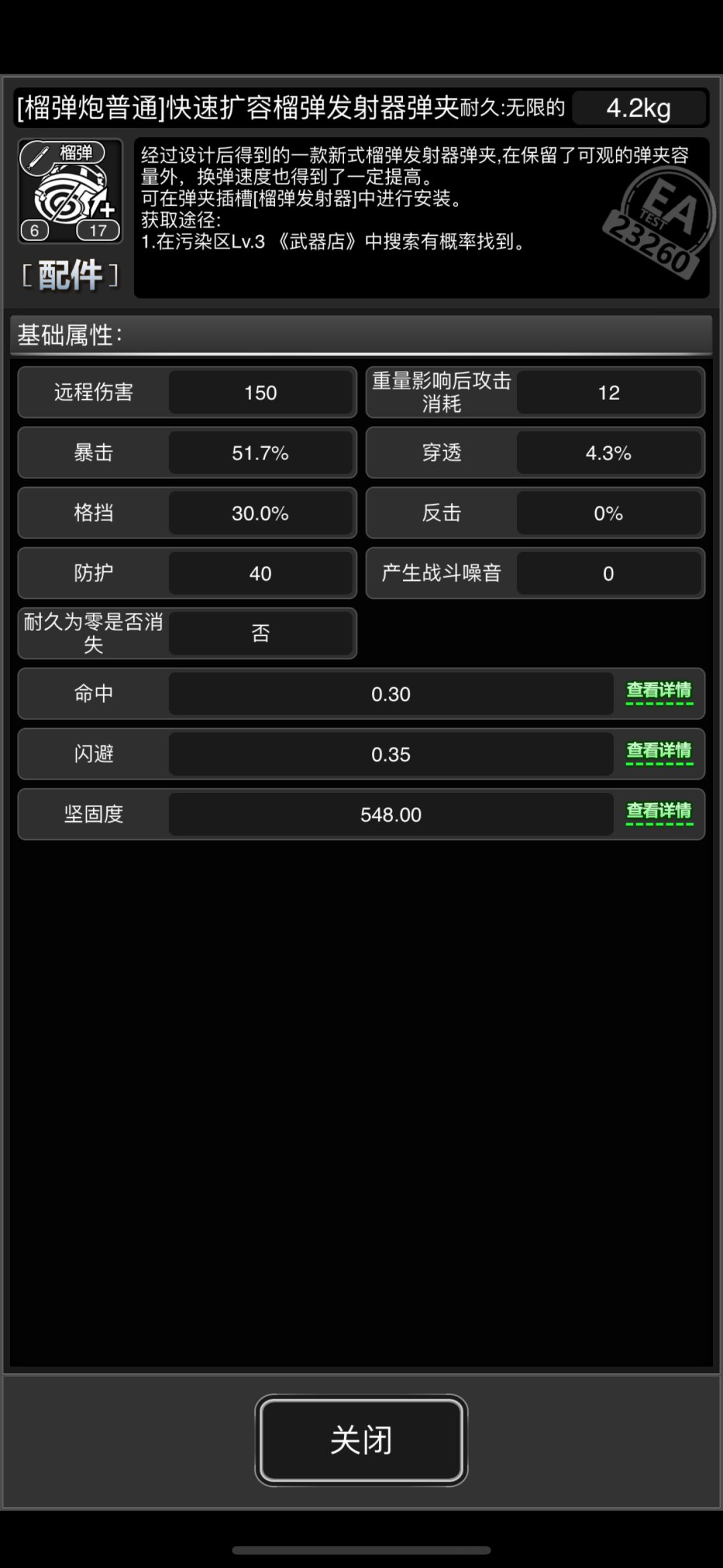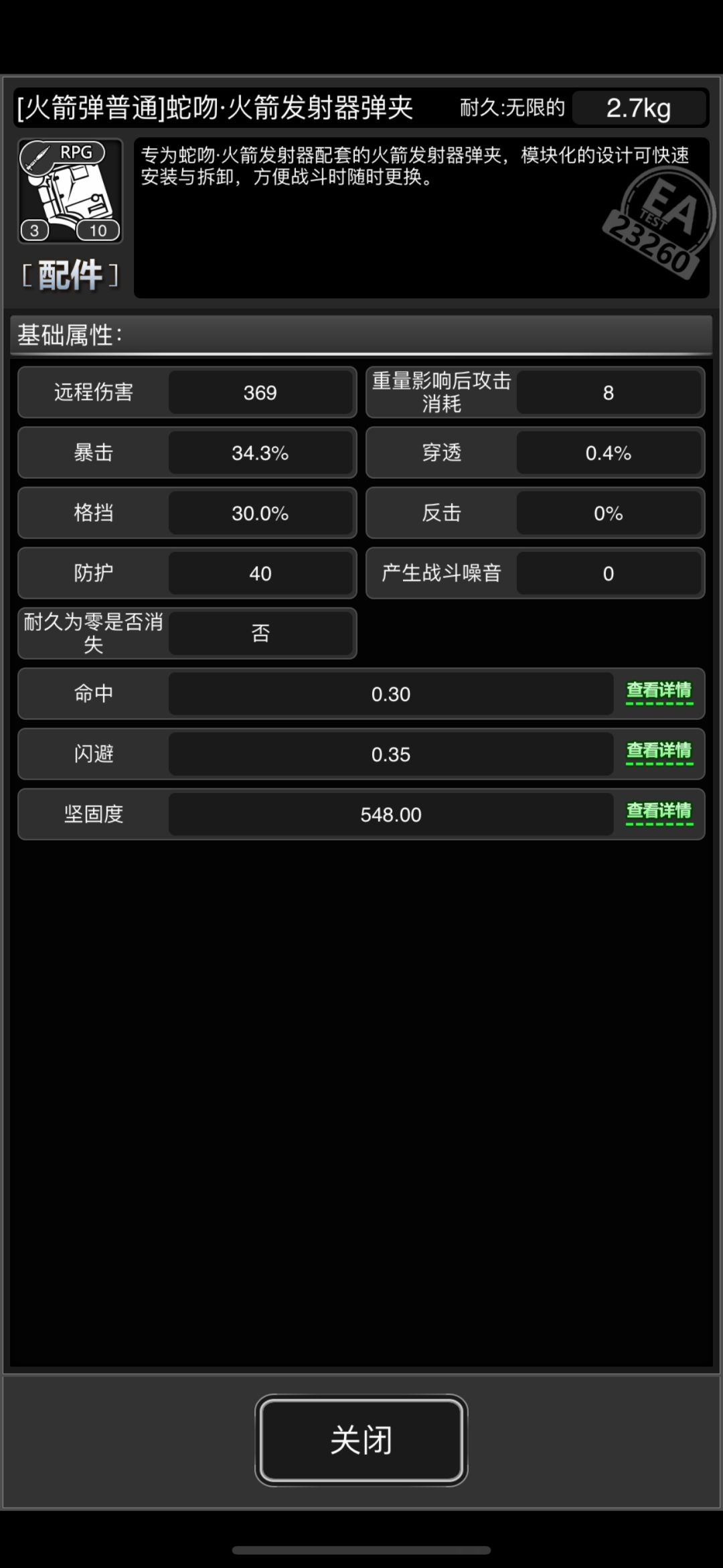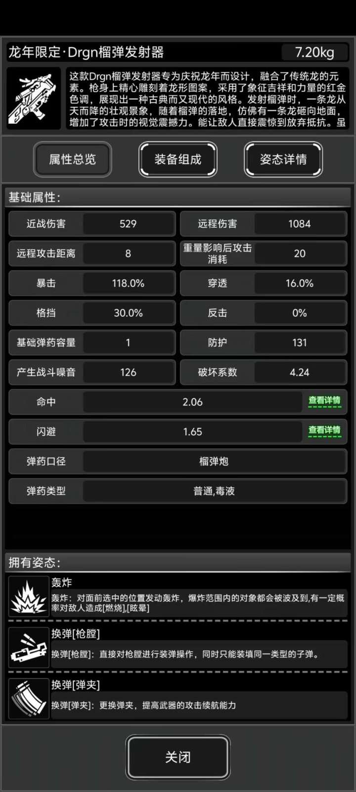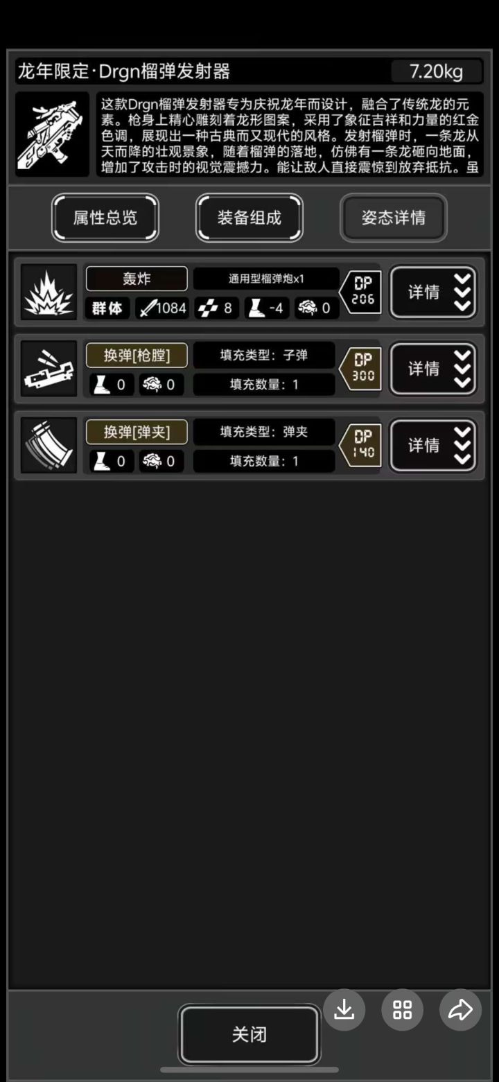 榴弹炮本体重5.5kg,rpg9.5kg;弹药均为0.5kg;榴弹炮快速扩容1.2kg,rpg普通弹夹1.2kg