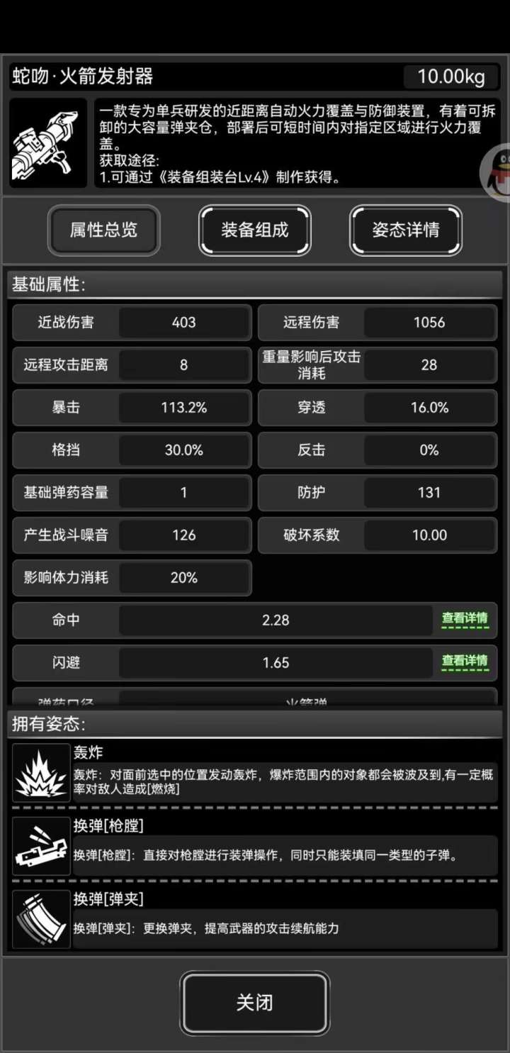 蛇rpg与原型共享熟练,龙榴为独立熟练度。龙榴和rpg的熟练度成长相近(每级+20攻击、-1%dp消耗、+0.02命中,龙榴再+0.01穿透)因本人龙榴和rpg的熟练不同,因此选取白骑联盟成员面板数据(@白骑_舞君、@白骑.还不走)。以上数据为满天赋+4级sg+0熟练度。不计入防具攻击力,无精神抖擞buff。