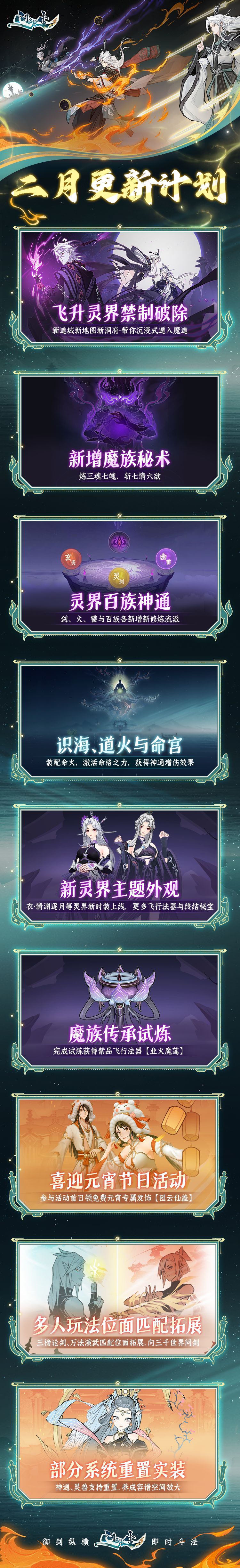 除了开放飞升灵界,二月还有哪些其他更新内容?