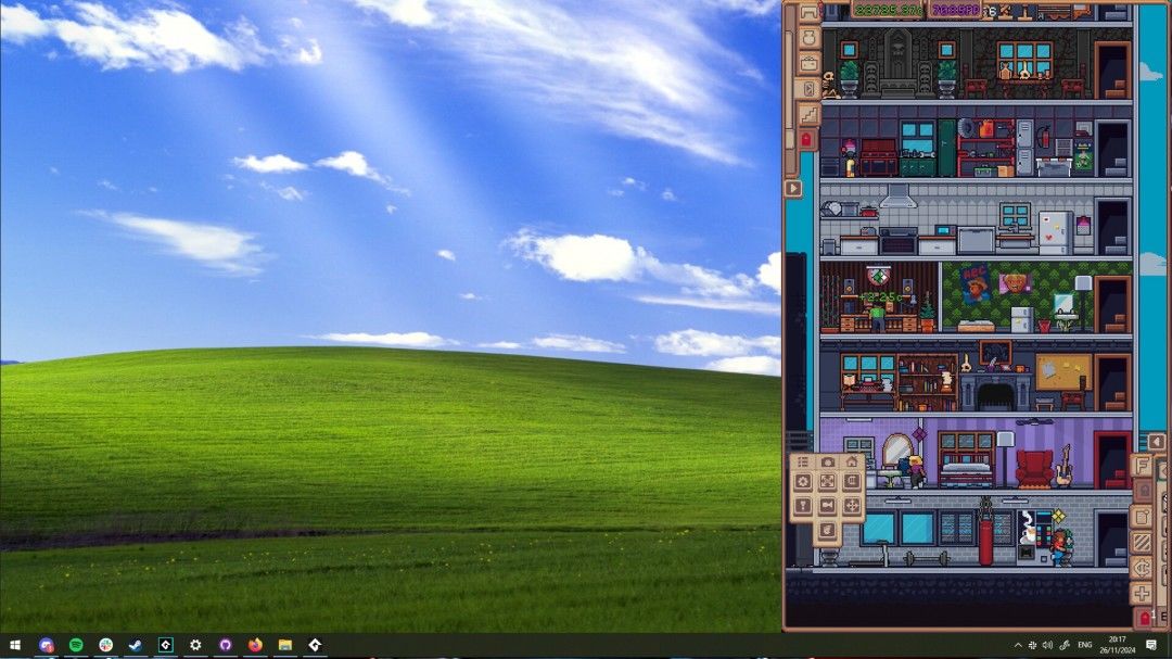《我的小小人生》的独特之处在于其巧妙的布局。它不会占据整个屏幕,你的“房子”沿着屏幕底部展开,这与2024年发布的有趣游戏《鲁斯蒂的退休生活》(Rusty’s