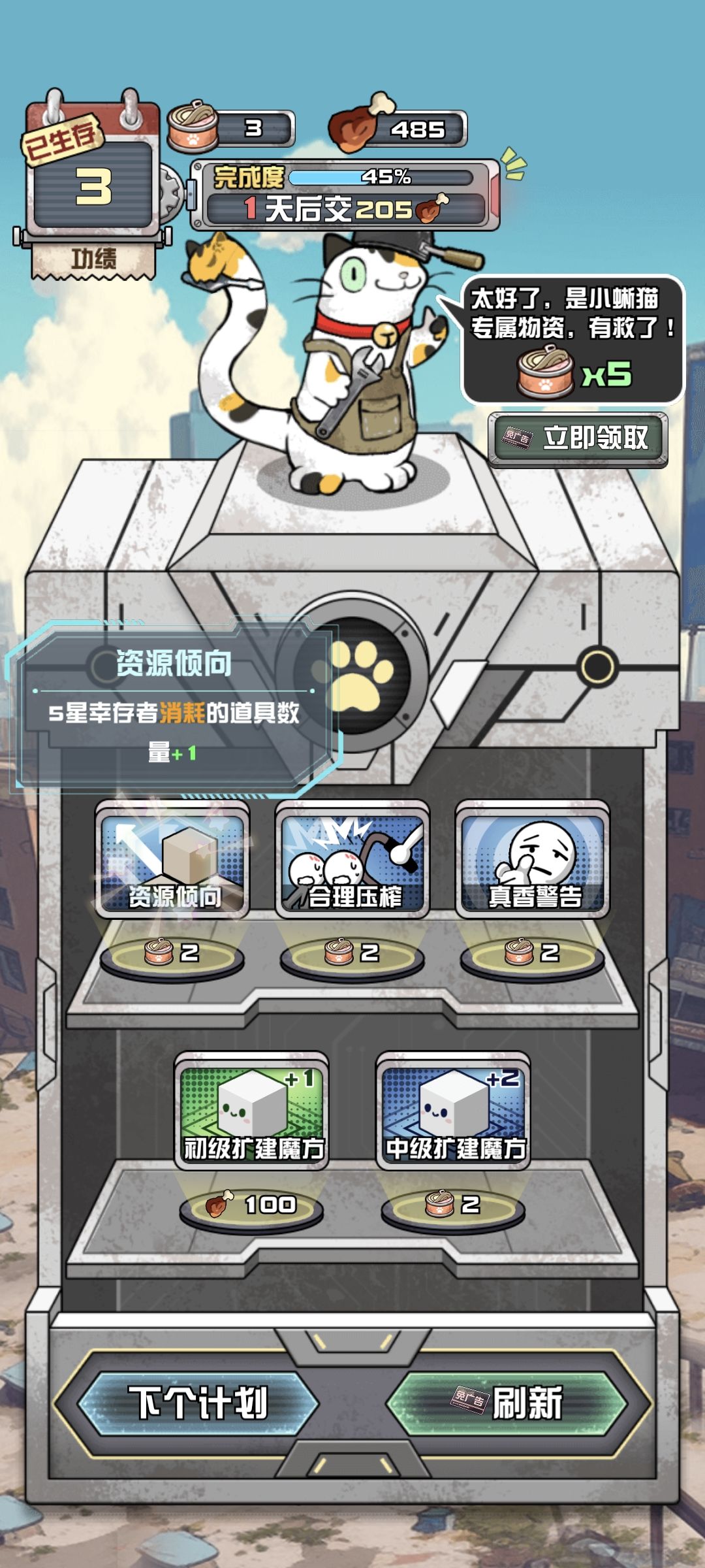 4 资源倾向 五星幸存者消耗+1(提高消耗就是提高产出⭐)