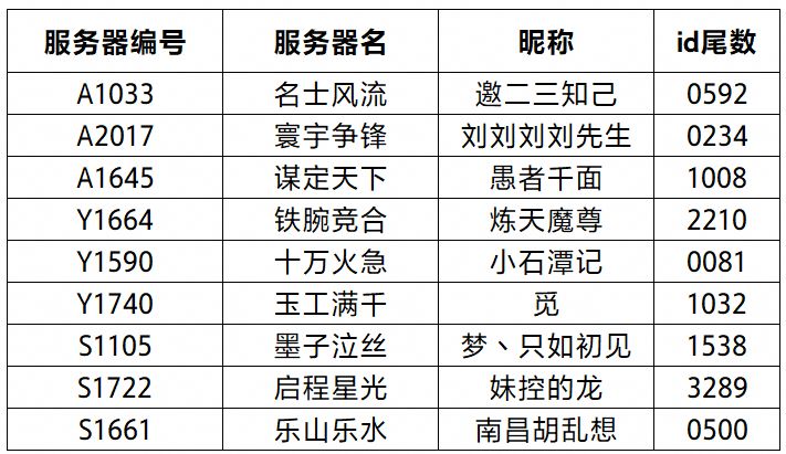 奖励的幸运小将军名单!