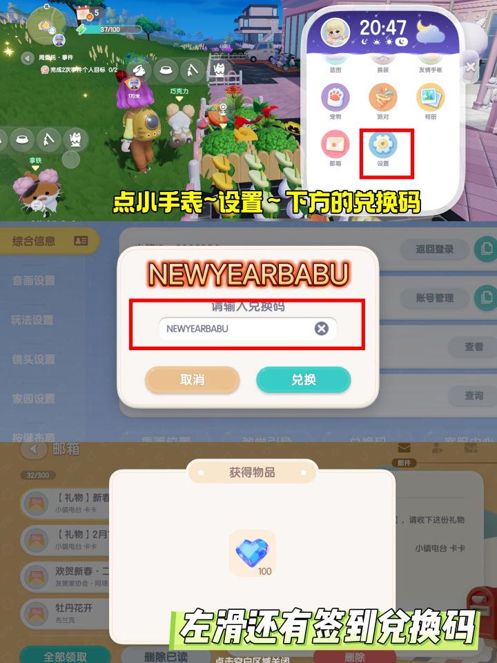 2️⃣兑换入口:首先点小手表-设置-下方的兑换码:输入兑换码-确定兑换-然后可以领取到邮箱