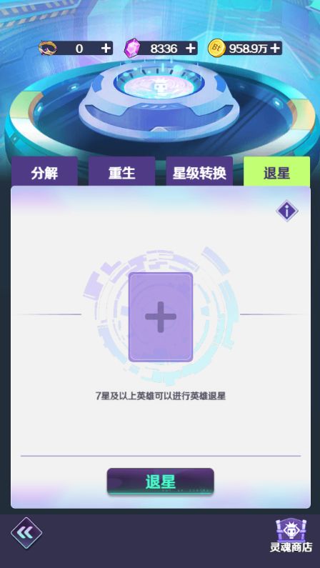 7.放入共鸣槽位的英雄无法进行分解、重生、退星、转换等操作,需要离开共鸣装置后才可以进行