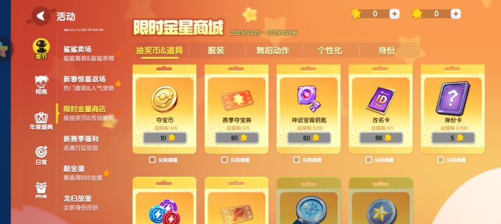 限时金星用处很少,身份基本都能用饼干解锁,唯一不可以用的联动角色和女帝,又不出现在其中。一张身份卡五个金星,说实话不如学习别人元气,可以自选皮肤,学习王者整限时点券,结果一整就翻车,说实话,你们可以去番茄那边看一下广告,黑猫应该也有,瞬间领8888,9999金星,然后春节前瞻,对话说送金星没想到是限时