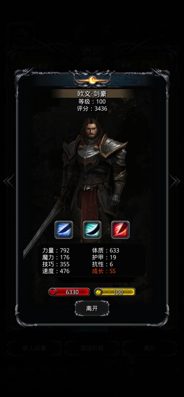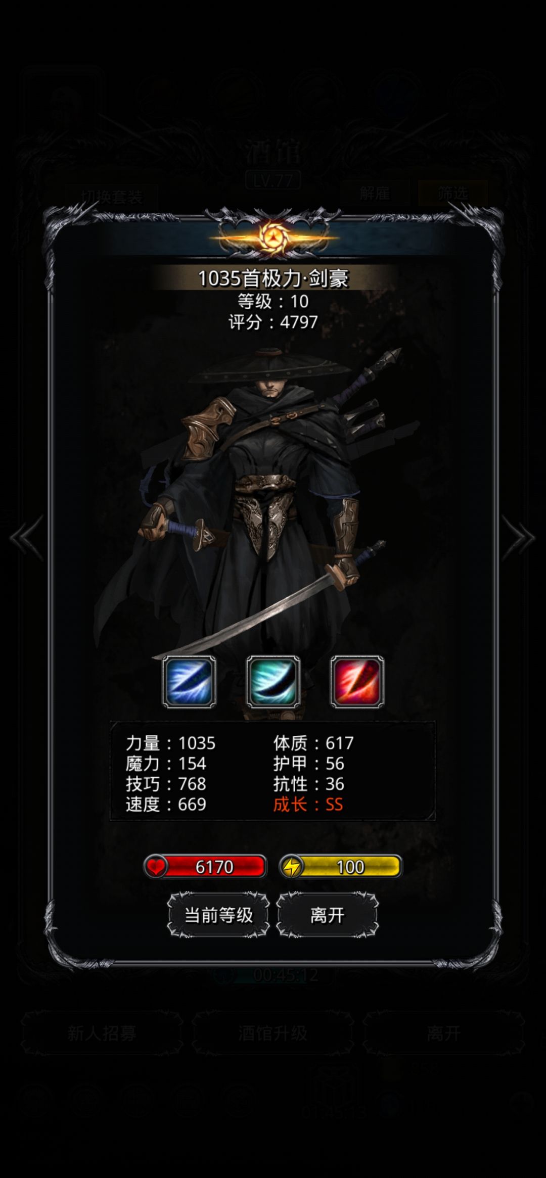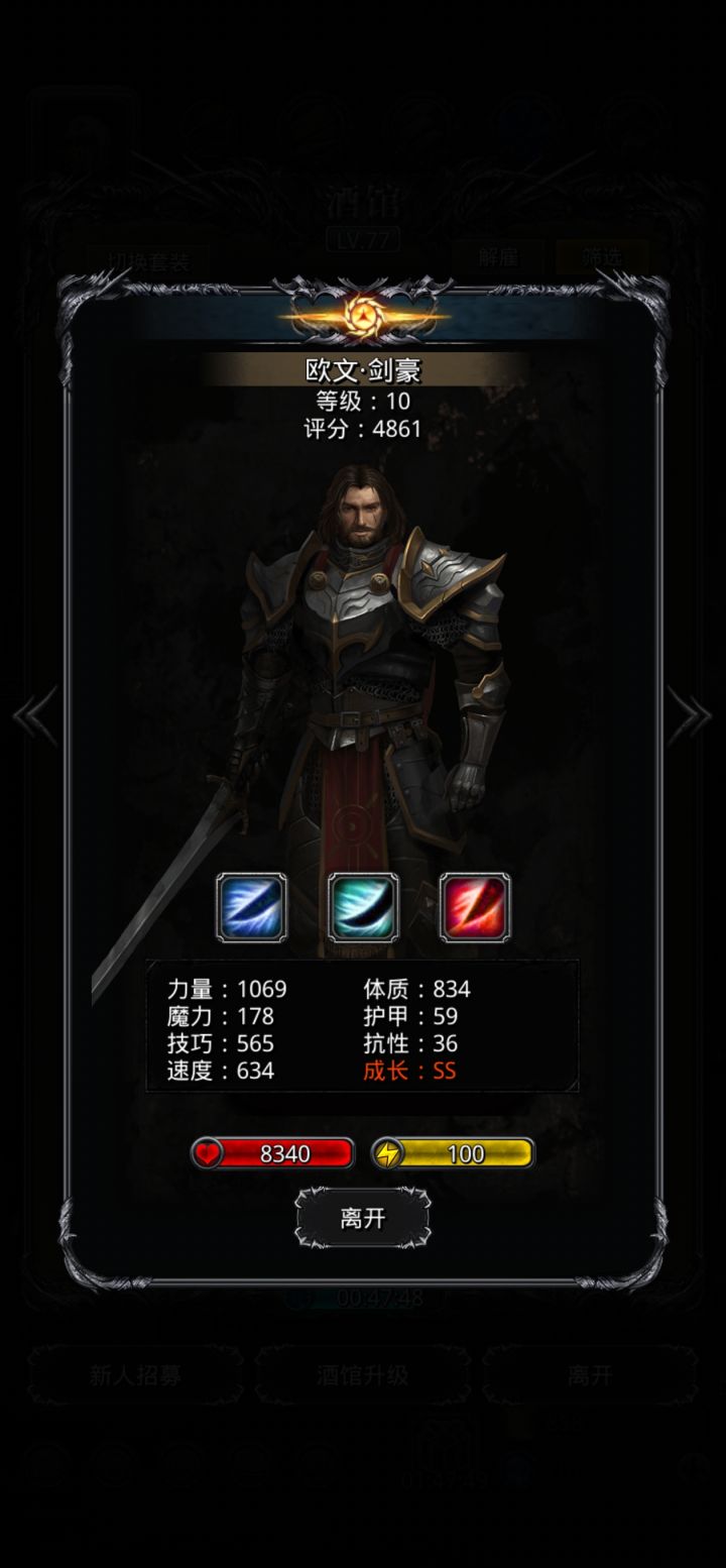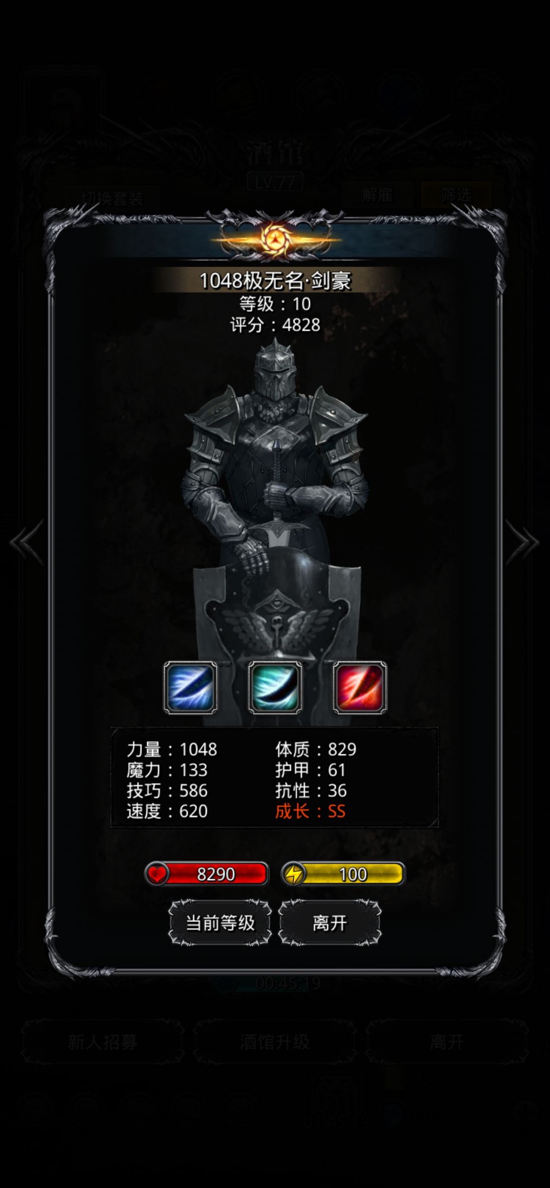 头一次见到这么好的五星剑豪胚子,还是没忍住截了图,还好没有歪太多,力量还是达到了大极品水准,就是技巧太低了