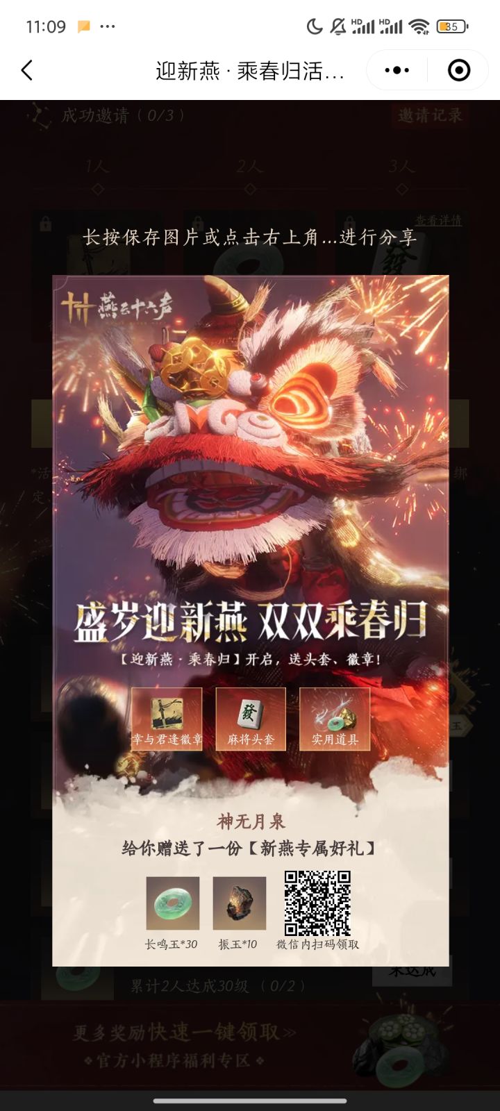 把上面那一串码复制一下进活动页填上你就可以拿奖励了!可以扫图上的二维码进入也可以点下面进入↓