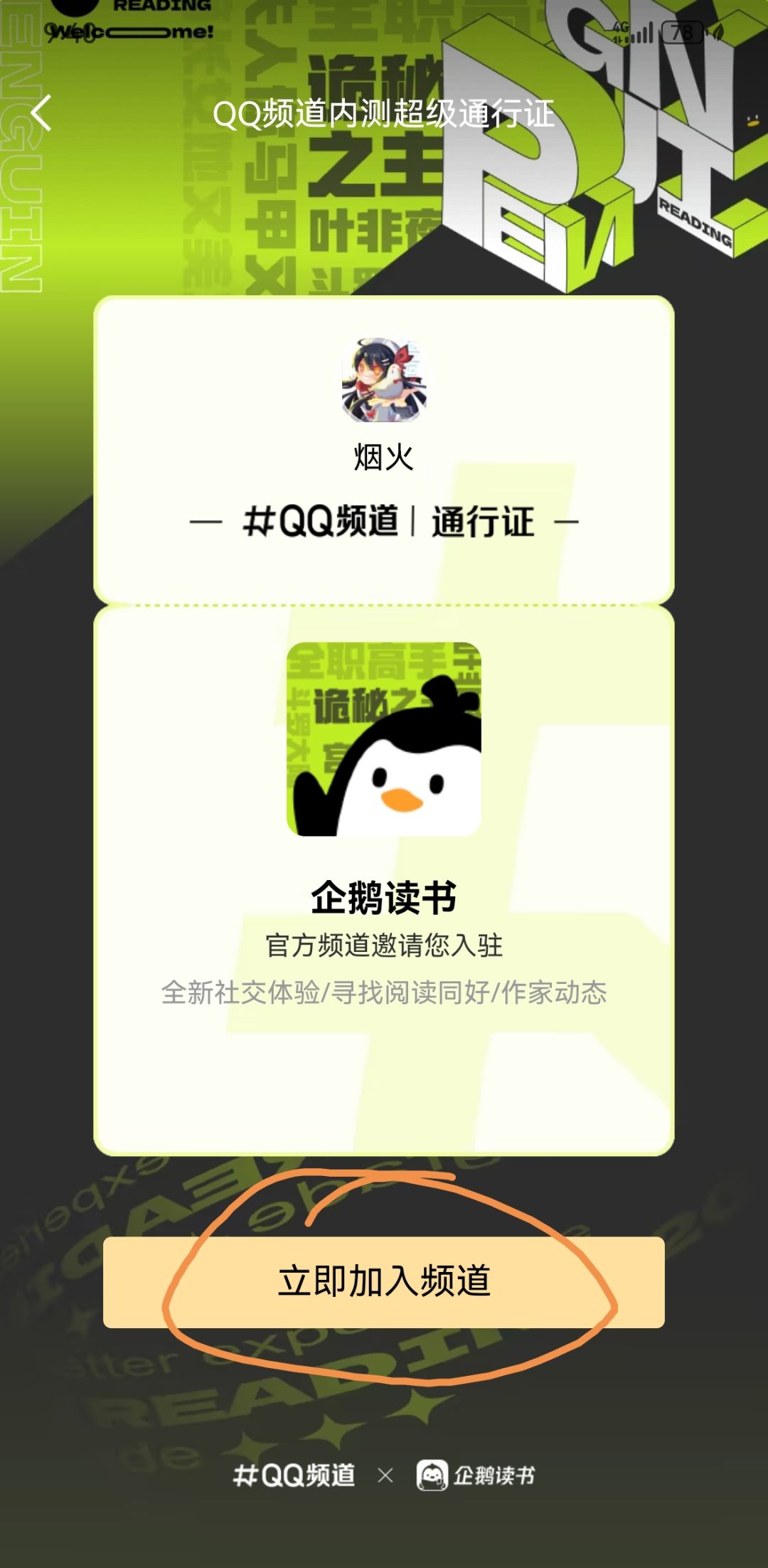 4、点击加入频道