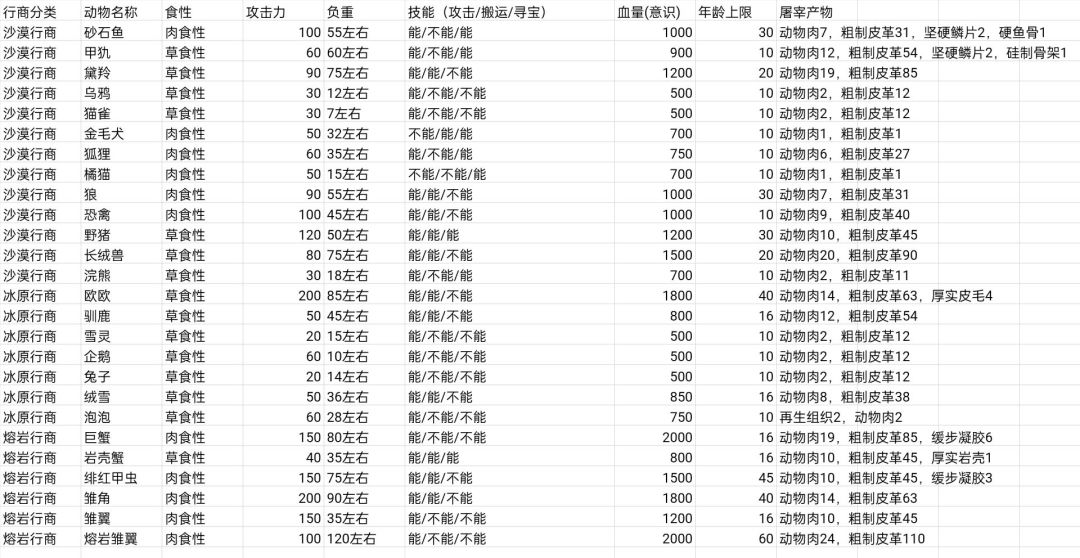注:宠物的载重可由年龄影响,所以屠宰可优先小的,因为产出固定不用担心产出少,年龄影响的载重大致都在5~10之间,可由宠物的年龄上限按比例计算大概多少岁增加1kg载重