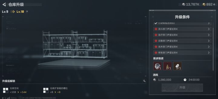 本来高高兴兴卡着点上来9级升10级,所有材料我都备好了,想着升10级仓库爽一波,结果还有部门等级要求,我心态直接炸了,要5个部门4级,我现在就战斗,医疗,战术,这三个部门3级,其他两个部门才一两级,我心态直接炸了,这得肝到猴年马月去了,不说了刷牙睡觉,缓一缓