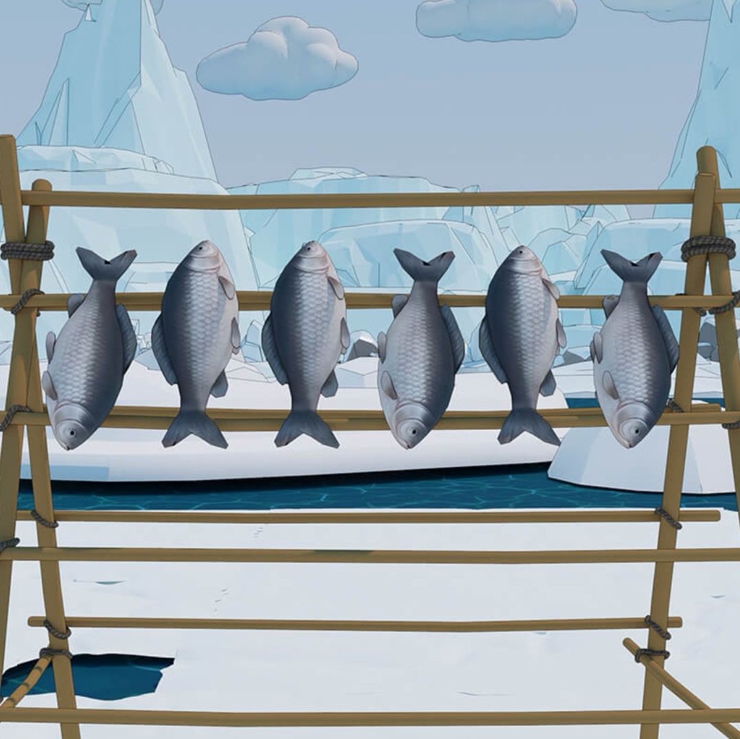 23. 点击在钓鱼的人,然后根据雪橇上的方向点击,得到一桶鱼。