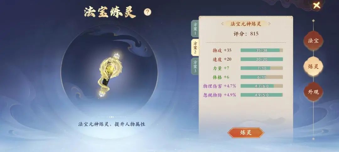 2、极品物理炼灵附加双额外属性拉满