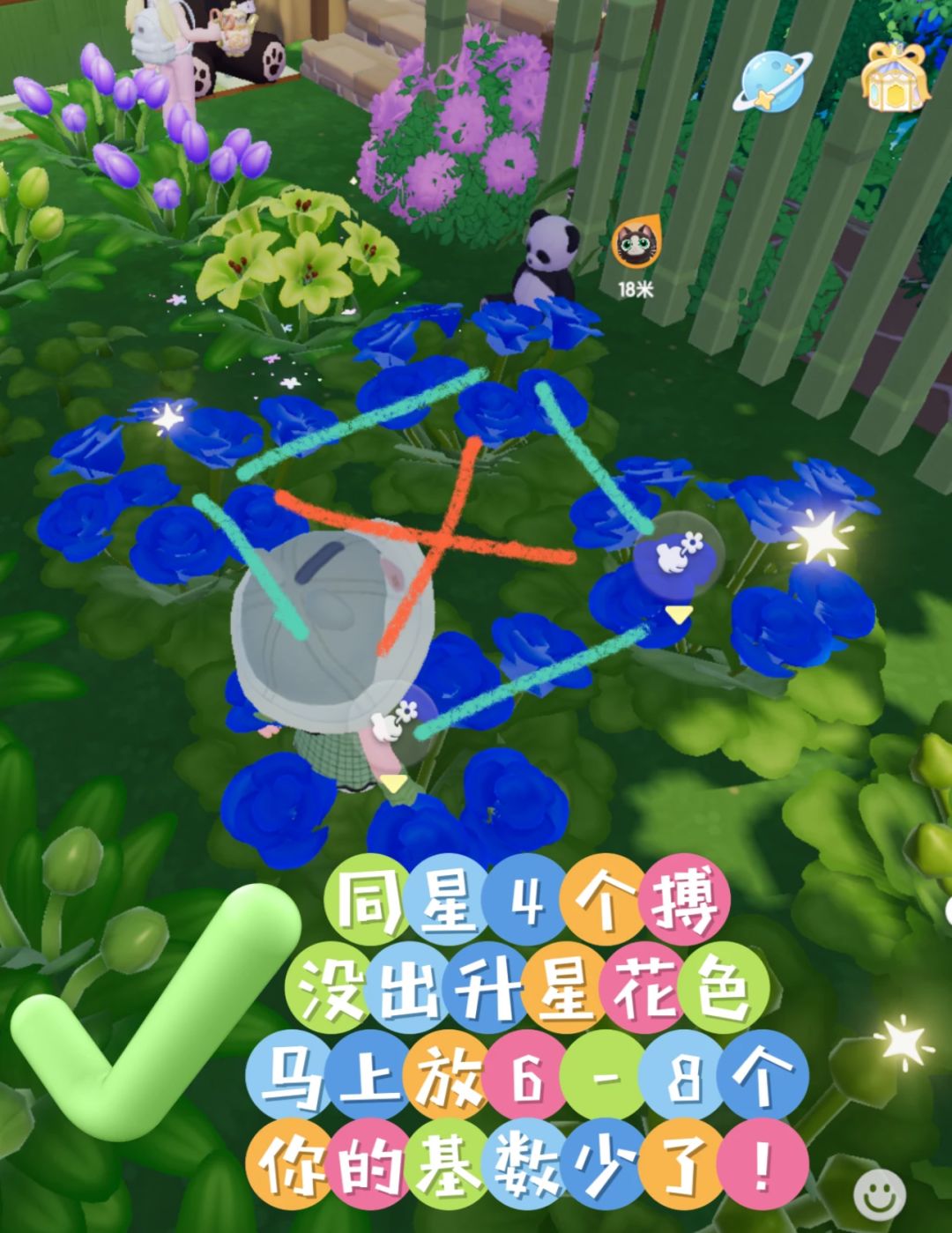 ❤️撒粉建议:这个时候如果撒繁育粉,不用省着就能全场撒粉,这样会杂交最多30朵以后多出来的粉在下一天继续用,省粉就可以撒30个,其实效果一样!