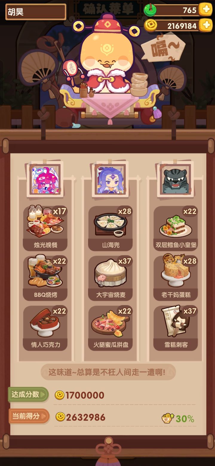 舒婷起到一个控制🔥的工具人作用,只要是烤菜就行。和p3互相调整,让p3尽可能上满高分菜,再用舒婷凑饱食度。