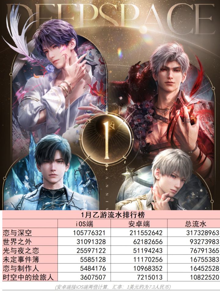 乙游大排行!恋与深空远超第二!