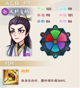 接下来肯定是在剧情中加入的盈盈啦,虽然只是R的品质,但是他的被动回血特性可是前期效果明显,特别是在黑木崖的闯关中能发挥稳定的作用。