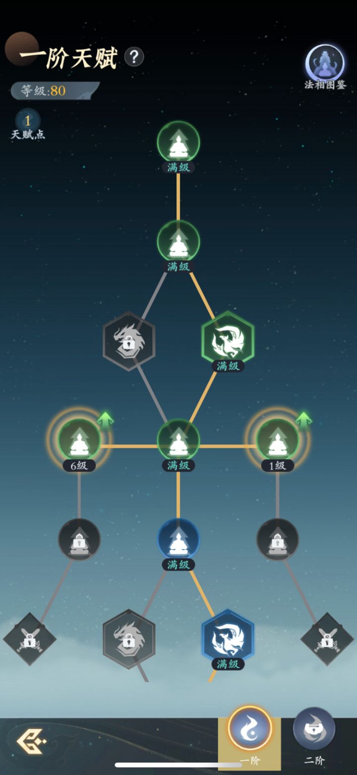 一阶天赋等级达到80级