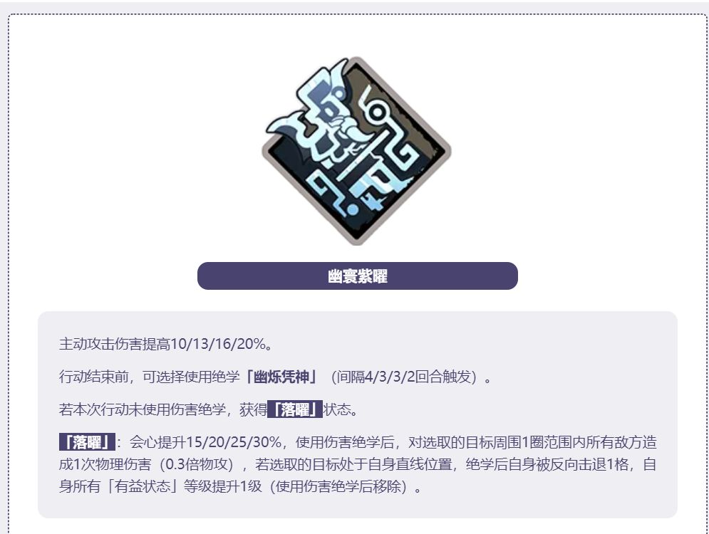 PVP可以打搅拌,氪佬玩具,没有免死,暗寒月狂喜,自带阵(侠客祝由),但是PVP侠客能上的寥寥无几,目前就一个波旬。攻击威胁范围大,警戒,拉人,能上脏水。PVE的话技能断档,神兵下毒,和允伽一样需要结界减CD救,允伽需要光结界才能技能不断档。紫炁技能千辰蚀神直线攻击+30%物理穿透,打九宫格BOSS的话会遇到和阿秋一样的问题,判定在9宫格中心点,站位很难受。普通玩家建议跳过,全力备战3月周年庆,我捞个夜50玩玩
