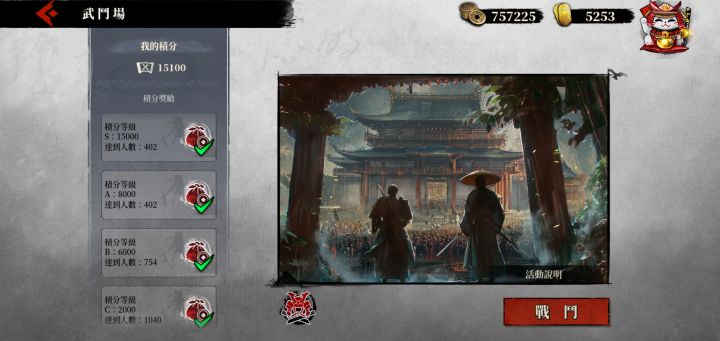 第二关,北条国崩,魔王信长,宫本剑豪,戚继光站人堆打反击,秦良玉山地打野,再来立花宗茂站森林放冷箭,最简单的一关。