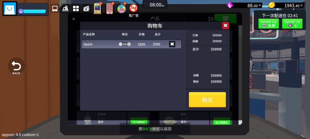 此bug可以无限刷各种产品、冰箱、柜台、冰柜、收银台、电灯。每次只能刷10份