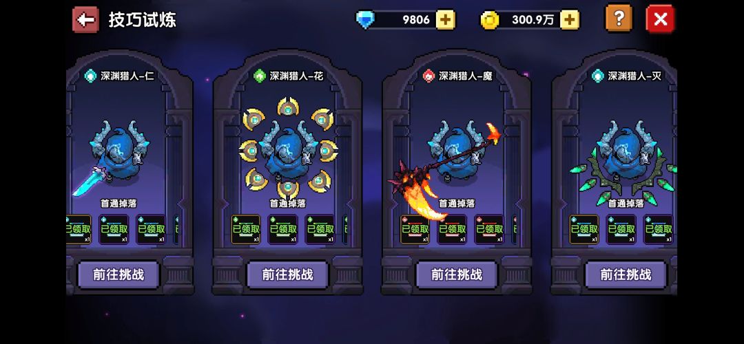 技巧试炼的每关都有首通掉落的技能书,可以获取一些指定技能。