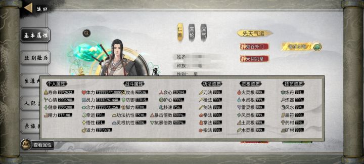 洪荒纯剑毕业面板(几乎带满 buff)