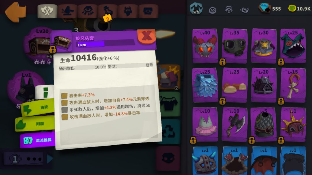 头盔:旋风头套(别选奴箭,天赋能点也别选,掉伤害)