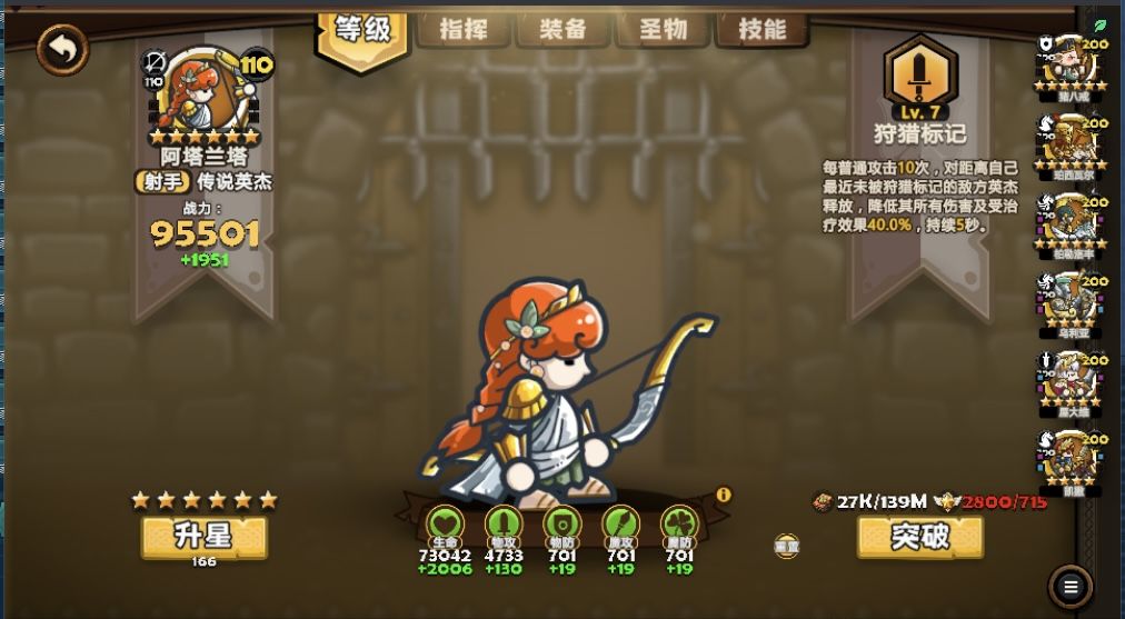 - 弓箭手:紫色加伯特(增强后输出爆炸)、阿纳托尔(驱散神技)是推图核心。