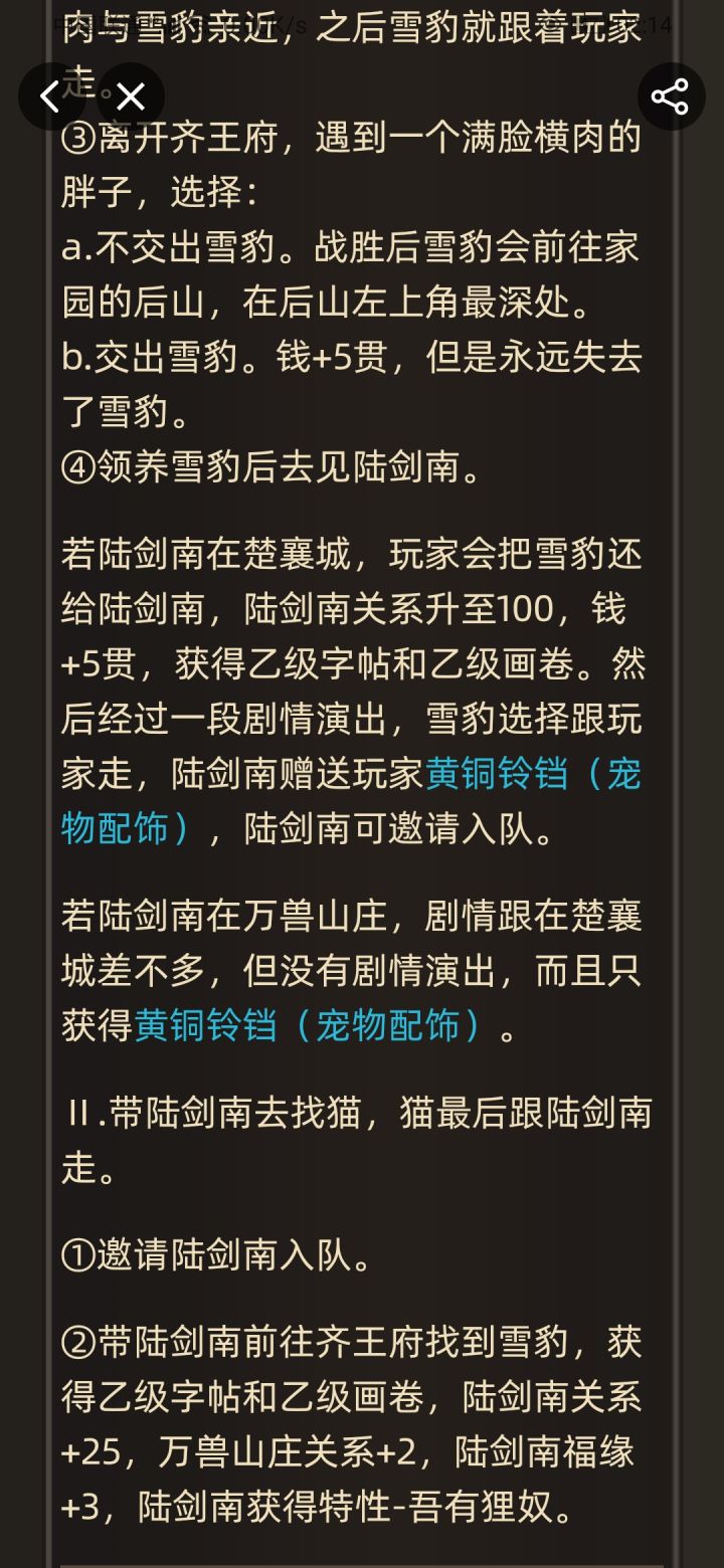 大佬们,wiki攻略上说可以邀请陆剑南去找雪豹,可是客栈门口的陆剑南根本没有邀请选项啊