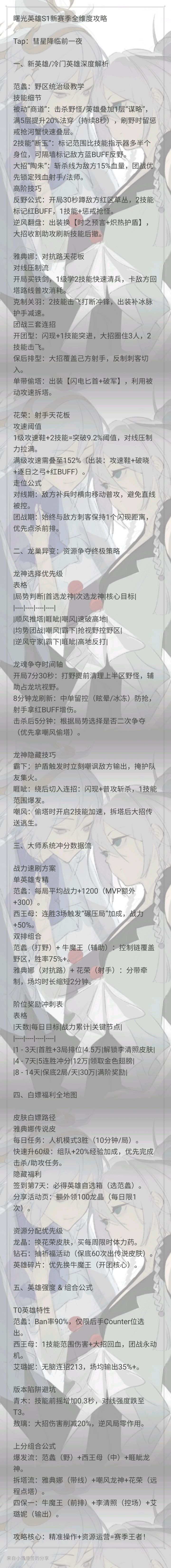 S1新赛季全维度攻略