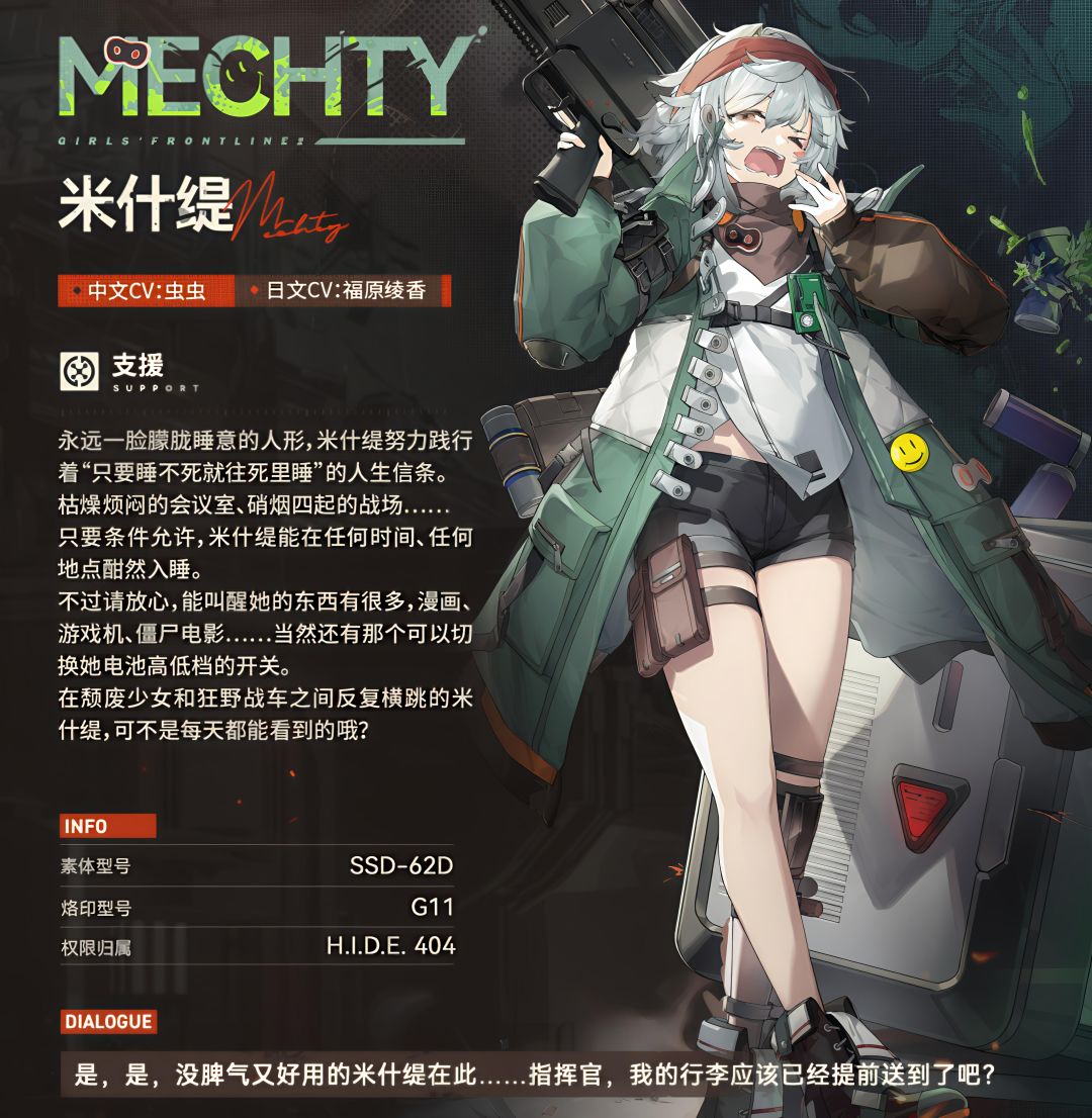 🔸米什缇:定位为毒队辅助,没有可露凯或者只有低椎可露凯时不建议抽取。因为毒队的核心输出可露凯可以串到其他队伍,低椎可露凯对于米什缇的需求并不高