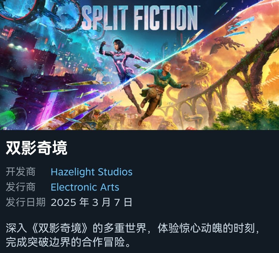在价格方面,Steam平台已经开启了预购,国区售价为198元,与《双人成行》一致。这个价格相较于其他大型游戏来说并不算高,而且据说《双影奇境》此时国区预购价是全球最低价。相信开发商Hazelight Studios的良心定价也深受玩家们的满意。这一价格策略不仅让更多的玩家能够有机会体验到这款游戏,也进一步证明了开发商对玩家的尊重和关注。