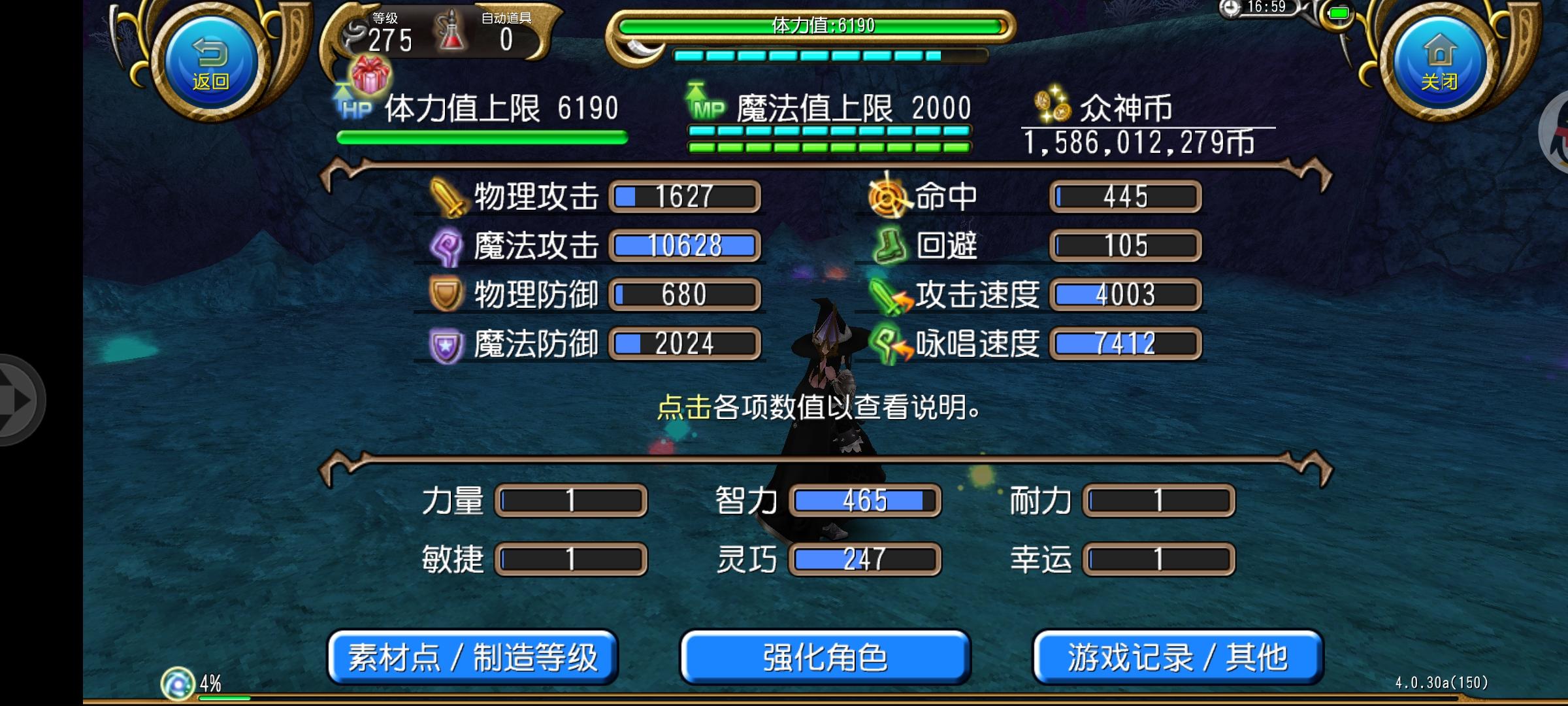 截图的面板为满buff状态,魔攻高的为魔攻状态,魔攻低的为魔贯状态(90%如果嗑药为100%)。