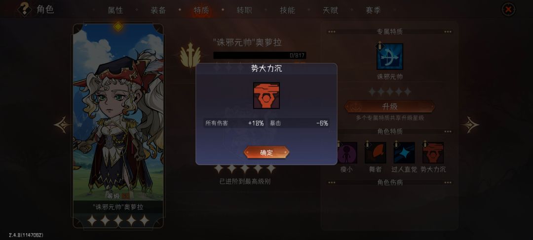 可以把初始的第2个特质洗成势大力沉(4个特质只有第2个可以洗出势大力沉 有对应区间的)