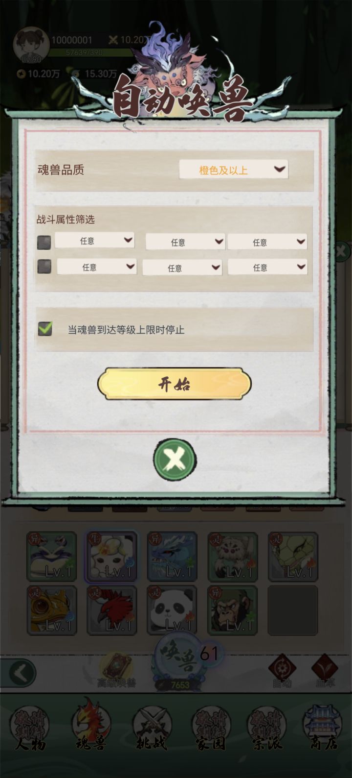 3,使用自动抽的时机,最好是渡劫之后,40级以上,这时候需要把身上的兽都升级到50级,就可以放一只兽到格子里,然后开启自动勾选橙色以上,这样抽到的所有橙色以下卡都会被那只兽吃掉,节省大量时间。