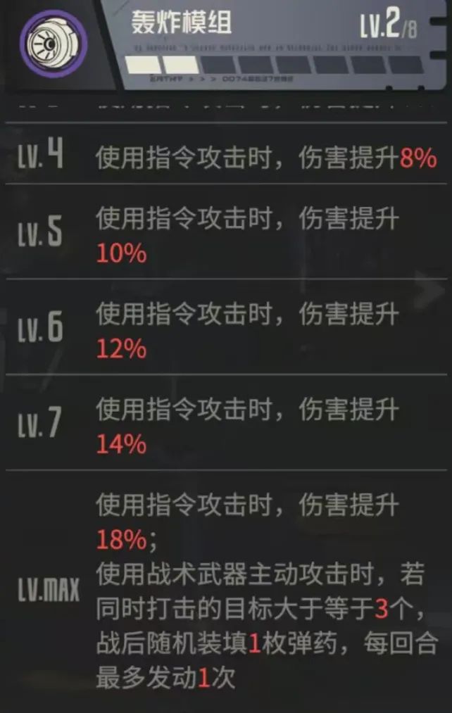 其中【广域轰炸】的范围非常可观,此外其关键是给全体友方施加1个随机的有益buff,持续2回合,这个buff的池子今天维一也简单测了下,大概包括但不限于命中/回避率+8%、伤害+10%、暴击/爆伤+15%、护甲+50%、受修理量+20%等,虽然高价值buff的占比并不是很大,但此技能对于碇真嗣、影子兔机兵的机师等角色会有不错的支持效果,这点也值得大家关注。