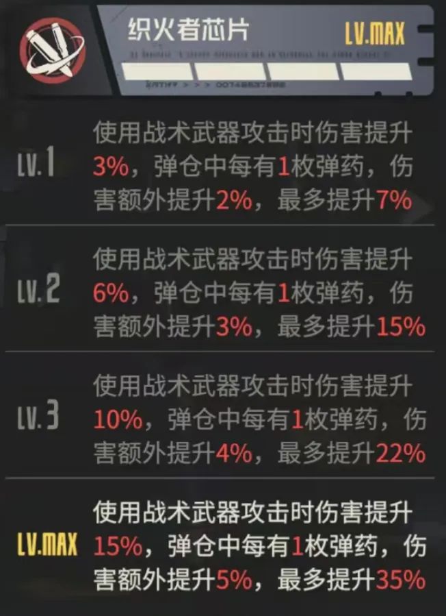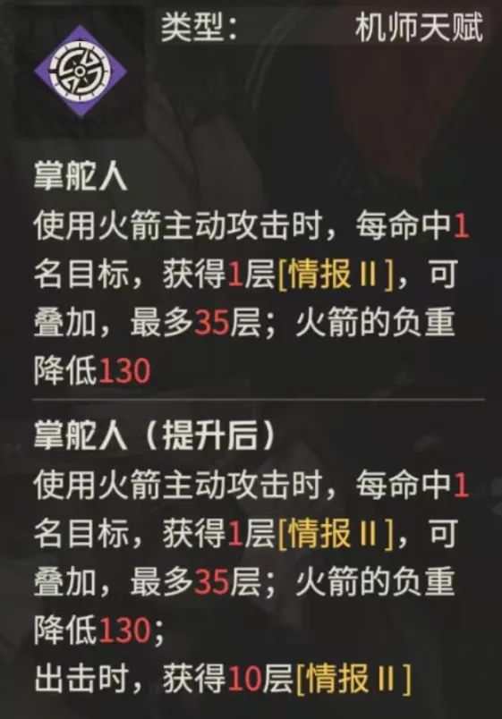 首先夫人的天赋和之前剧情中出现的角色天赋基本一致,可以按照火箭攻击到的敌人数量来提供全队的“情报”buff,这个buff基础状态下时每层0.8%增伤,最高叠加25层到20%的全队增伤,然后在γ2区解锁更高算力上限后可以提升到每层1.2%增伤,最高可叠加35层到42%的全队增伤,这部分因为即使是0潜能的夫人也可以达到的,所以从理论层面来看夫人的天赋,增伤效果非常可观。(不过“情报”buff每回合会减少2层,这点对于其暖机的速度会有较大的影响,虽然夫人有技能可以让这个buff在10层以下时不减少,但这个技能一般带的几率也不大)接着夫人的3潜能效果可以让“情报”buff在开战时积累10层,这个效果对于钢岚这款较为追求回合数与通关速度的游戏来讲具备一定的意义,但并非绝对强求的潜能选项,资源较为充盈的朋友可以适当考虑。