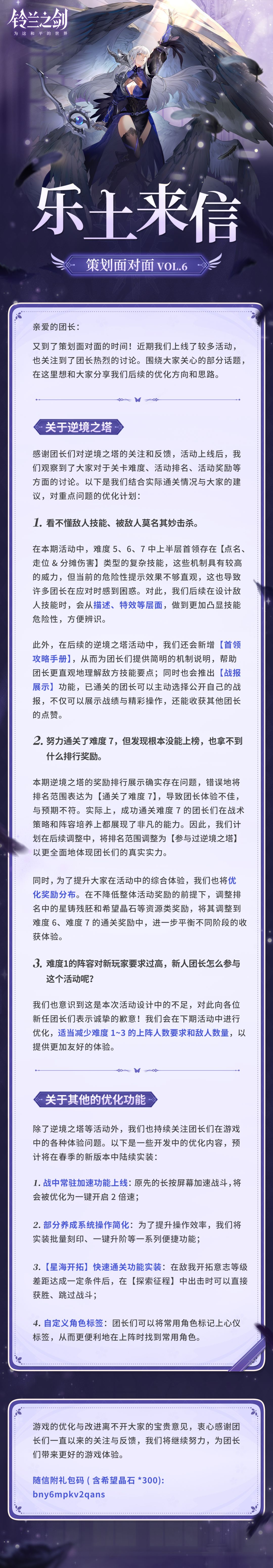 礼包码(内含希望晶石*300):bny6mpkv2qans