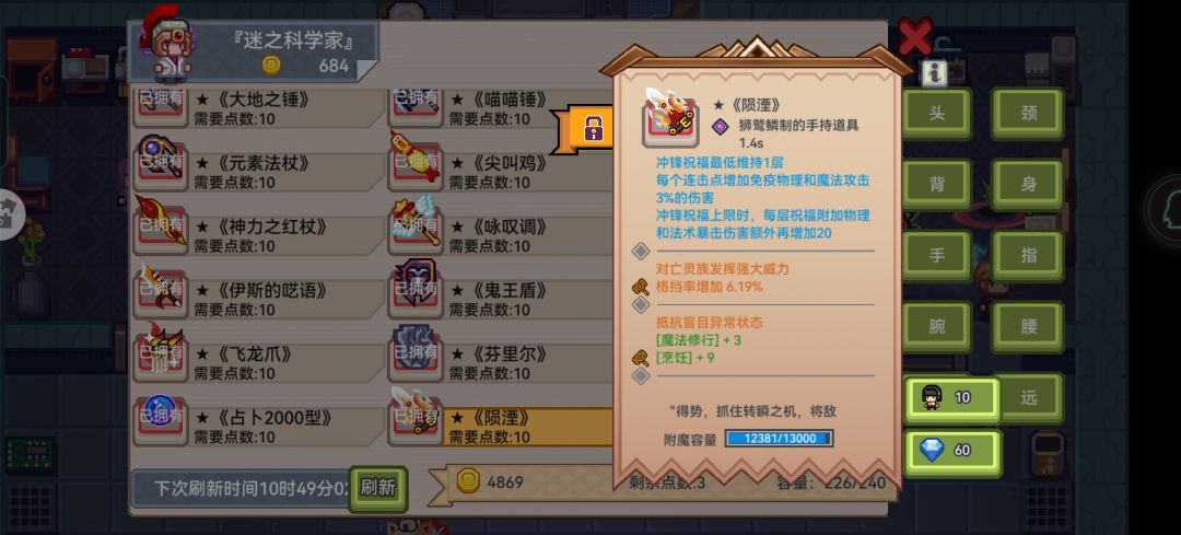 有个亡灵敌,但带锤的是个格挡,还有想改这个买一个镐子够不够用啊