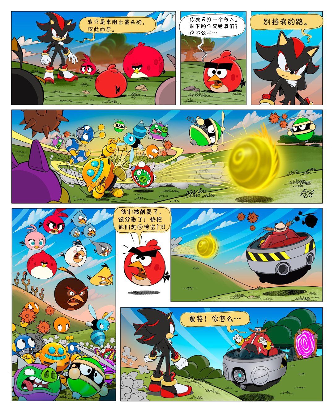 愤怒的小鸟跟夏特联动的漫画汉化